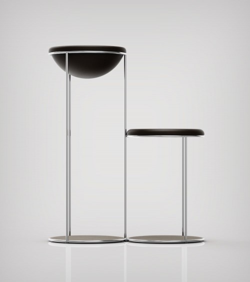 The Cosmos cat tree in cork is composed of a half-sphere and a varnished cork tray from the Dehesa forest in Portugal. Its chromed steel structure is made in Italy.